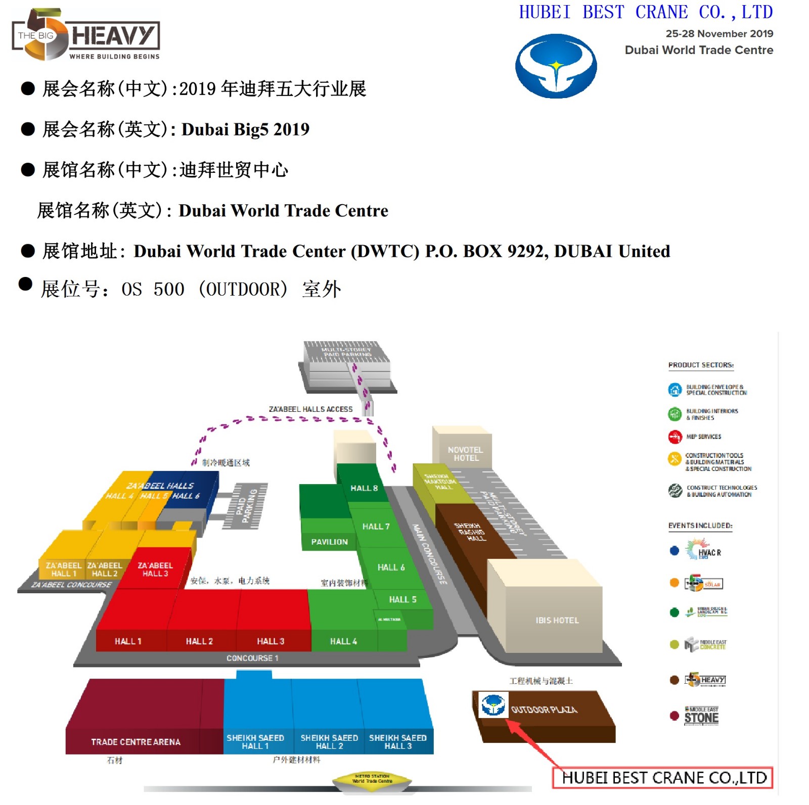 歡迎光臨 2019 迪拜五大行業展地址:迪拜世貿中心Dubai World Trade Center (DWTC) P.O. BOX 9292, DUBAI United時間: 2019.11.25-28展位號: OS 500 室外聯系人: Jessie